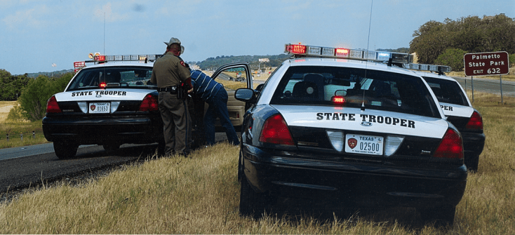 That’s dad (in the blue/white striped shirt) leaning into the left DPS car after helping catch a speeder.