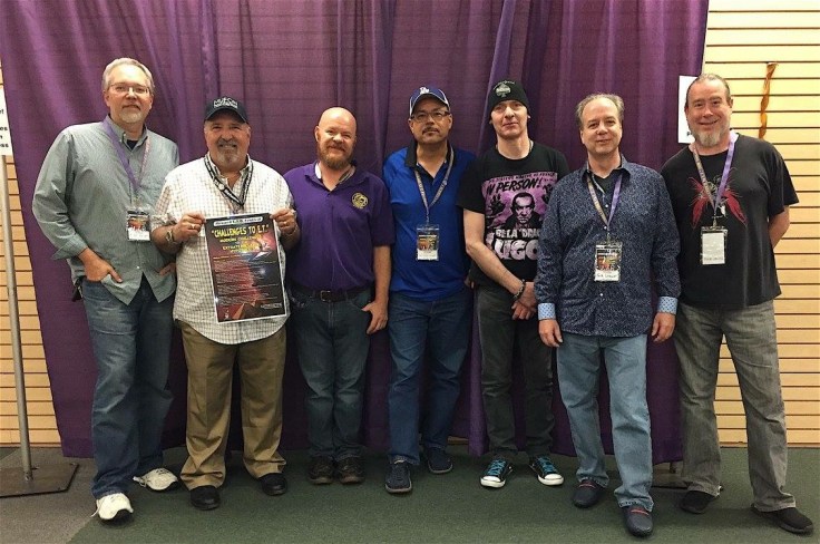 SMiles with conference organizer Guy Malone with speakers at his “Modern Challenges to the Extraterrestrial Theory Conference” including Michael S. Heiser, Joseph Jordan, Guy Malone, Greg Bishop, Nick Redfern, and Jack Brewer.