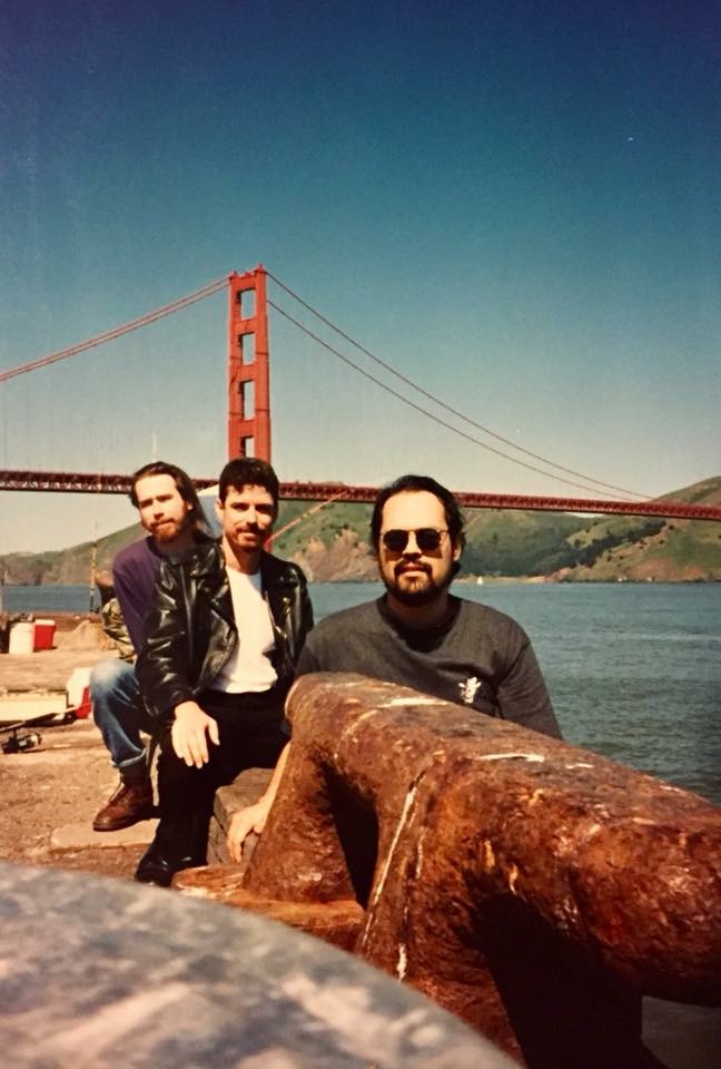 In 1995 I traveled to the University of California, Berkeley, to present a paper to the Society for the Anthropology of Consciousness conference. I’d never spoken in front of a large audience at that time, and while it wasn’t a huge crowd, I was incredibly nervous. I even made a joke about this before I began speed-reading my essay. Each presenter was only allotted 20 minutes and I wanted to be sure to finish everything I’d written. The presentation was well received and I thankfully was able to obtain audio recordings of the talks. Below you will find links to the original raw audio recording as well as a recently “enhanced” version. Among the audience members of anthropologists and other attendees were my then new friends, Robert Larson and Greg Bishop – two of the 3 co-founders of the Excluded Middle magazine. They’d driven up from Los Angeles to see me speak. After my presentation they drove me around the San Francisco area – you can see a photo of us below sitting in front of the Golden Gate Bridge.
